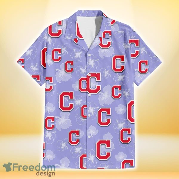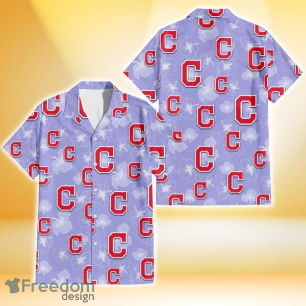 Cleveland Indians Sketch White Hibiscus Violet Background 3D Hawaiian Shirt Gift For Fans