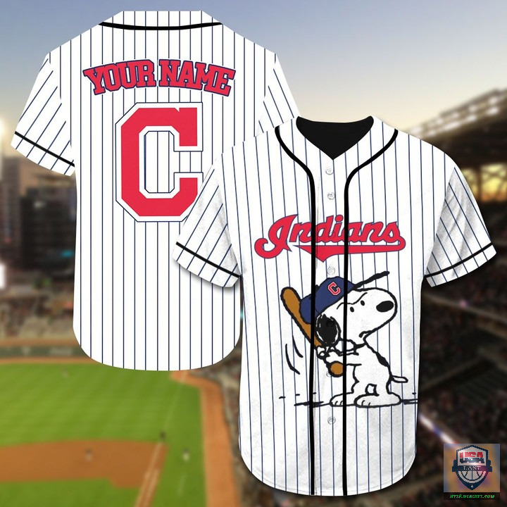 Cleveland Indians Snoopy Custom Name Baseball Jersey