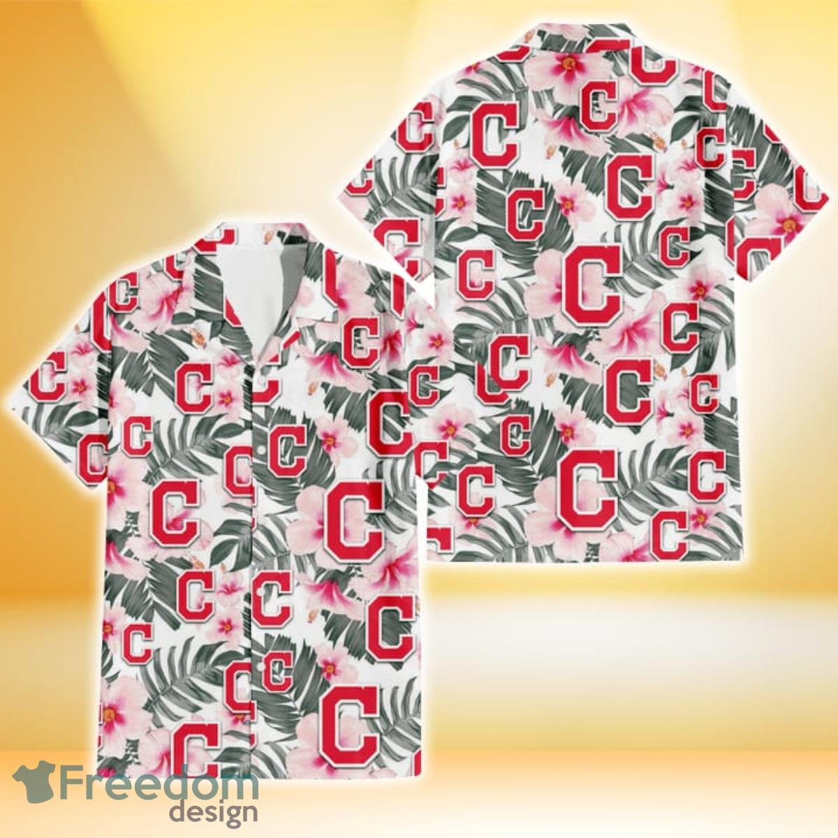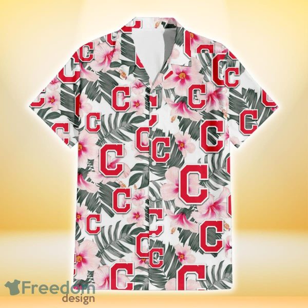Cleveland Indians White Hibiscus Green Leaf White Background 3D Hawaiian Shirt Gift For Fans