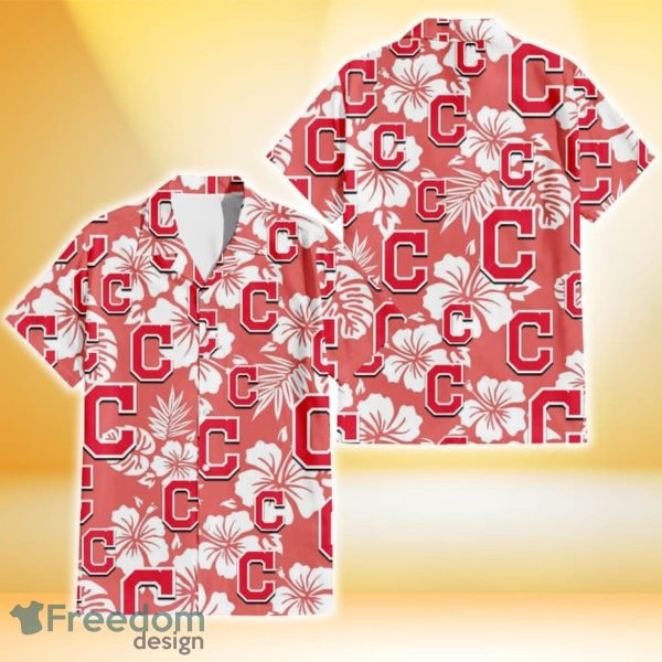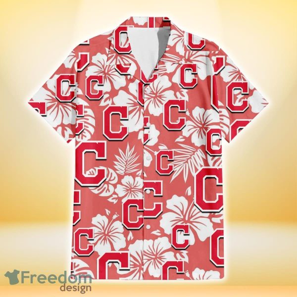 Cleveland Indians White Hibiscus Salmon Background 3D Hawaiian Shirt Gift For Fans