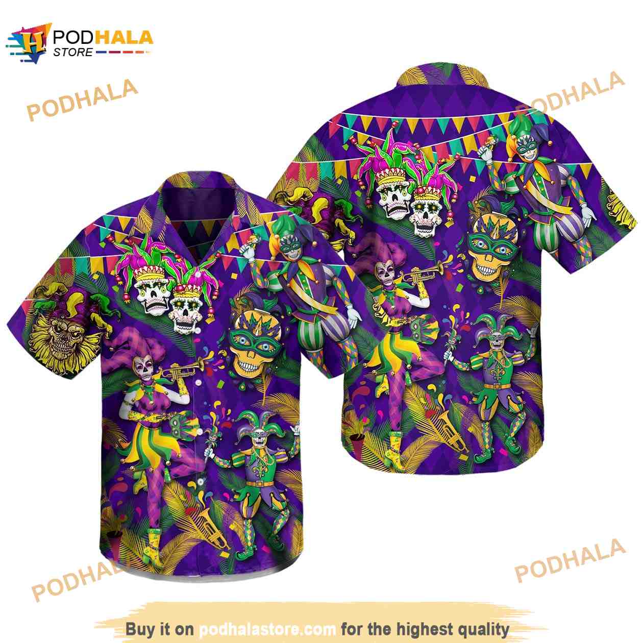 Get the look you need for any occasion with Clown Skull Happy Mardi Gras Pattern On Purple Funny Hawaiian Shirt. These customizable hawaiian shirts are perfect for any festival, party, vacation, or time at the beach. With multiple color options available these shirts will make you the real eye-catcher at any event!