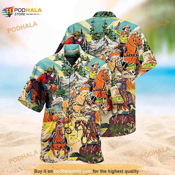 Cowboy Real Man Ride Horses Funny Hawaiian Shirt, Colorful Tropical Hawaii Shirt