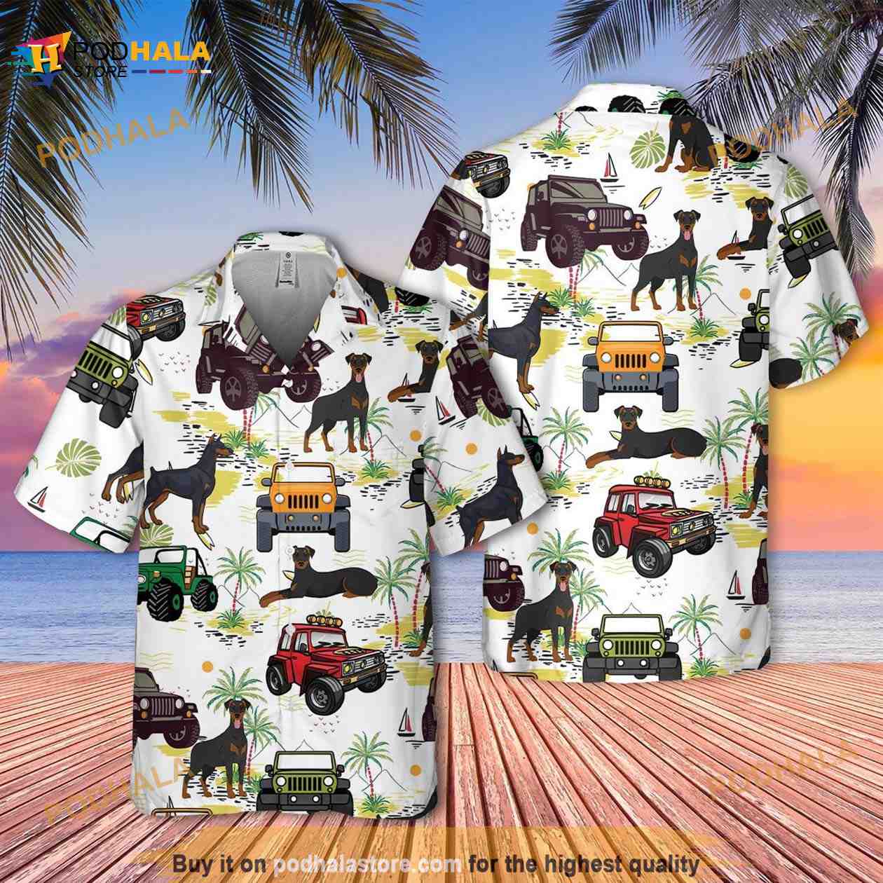 Doberman Hawaiian Shirt, Car Hawaiian Shirt, Doberman Dog