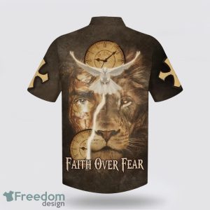 Faith Over Fear AOP Hawaiian Shirt Summer Holiday Gift Jesus Lion And Dove 3D Printing Summer Beach Shirt Hawaiian Shirts