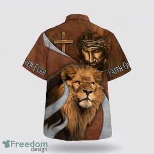 Faith Over Fear Jesus Lion AOP Hawaiian Shirt Summer Holiday Gift