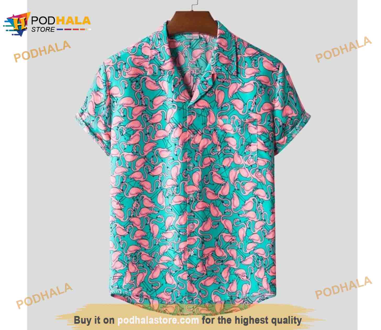 Flamingo Hawaiian Beach Flower Shirt Men’s Summer Hawaii Shirts