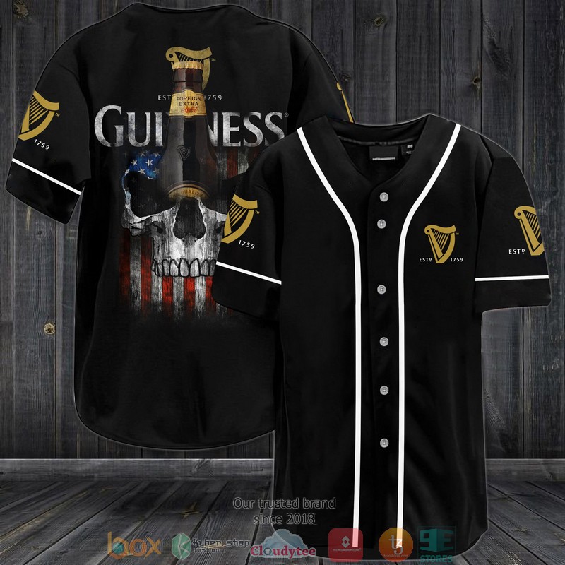 Guinness Beer Us Flag Skull Black Baseball Jersey