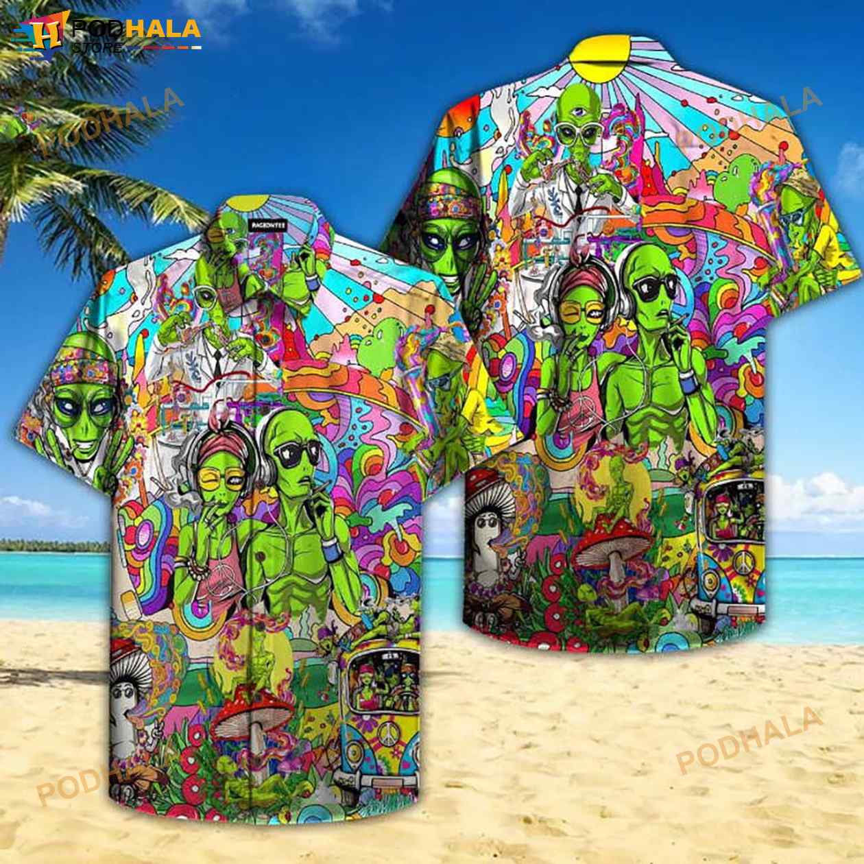 Hippie Alien V1 3D Funny Hawaiian Shirt