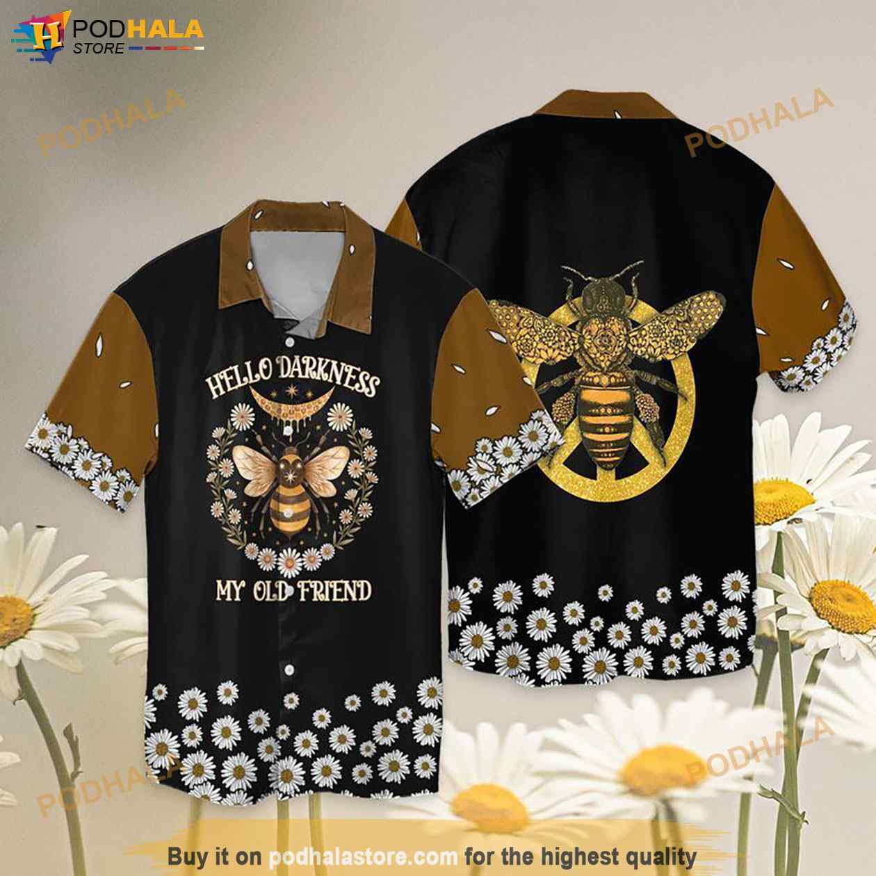 Get the look you need for any occasion with Hippie Peace Bee Hello Darkness My Old Friends Funny Hawaiian Shirt. These customizable hawaiian shirts are perfect for any festival, party, vacation, or time at the beach. With multiple color options available these shirts will make you the real eye-catcher at any event!