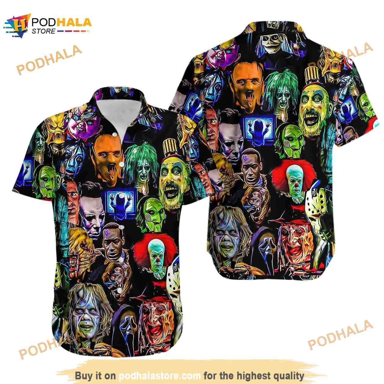 Get the look you need for any occasion with Horror Movie Horror Character Hawaiian Shirt For Fans. These customizable hawaiian shirts are perfect for any festival, party, vacation, or time at the beach. With multiple color options available these shirts will make you the real eye-catcher at any event!
