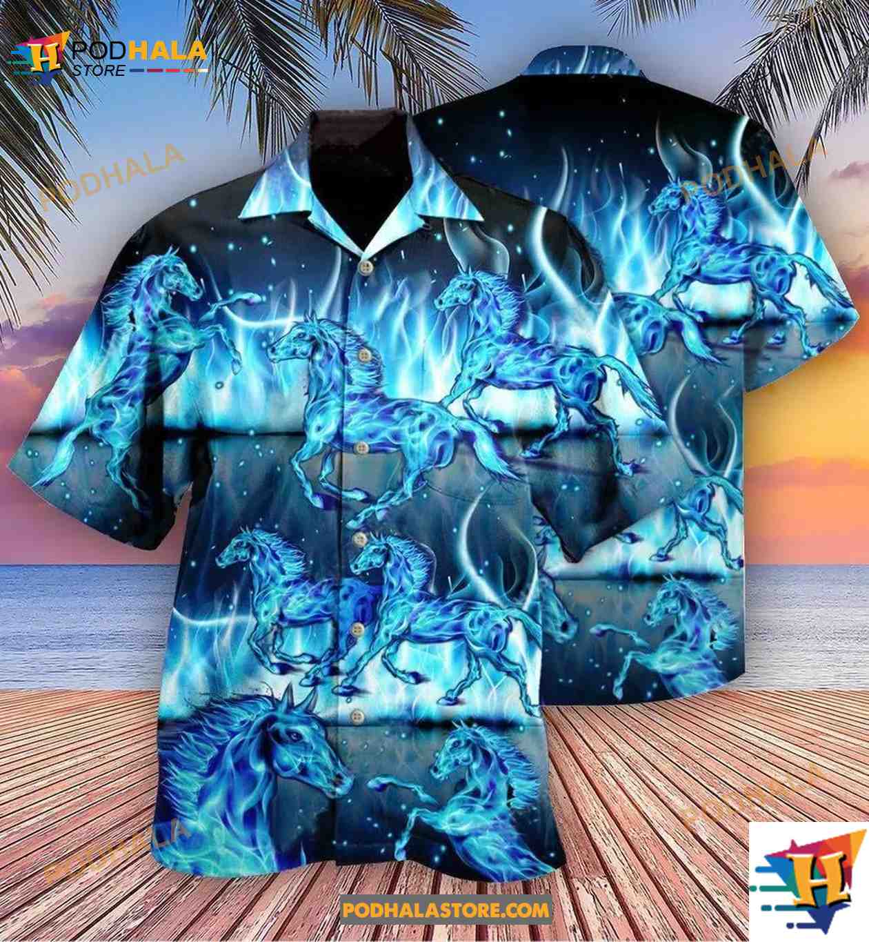 Horse Burning Blue Hawaiian Shirt, Gifts For Horse Lovers