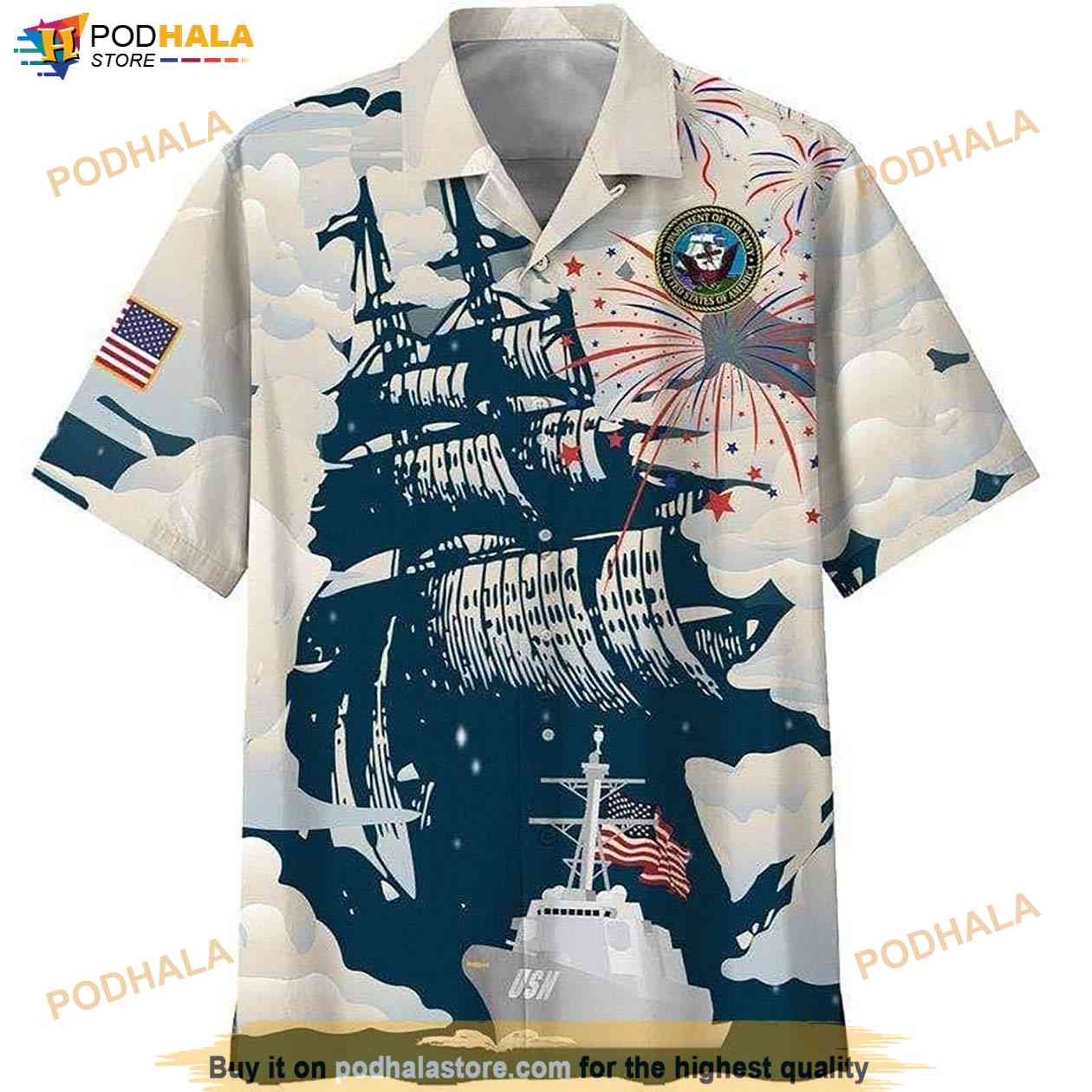 Independence Day Navy Veteran Hawaiian Shirt, Aloha 4th of July Hawaii 3D Shirt
