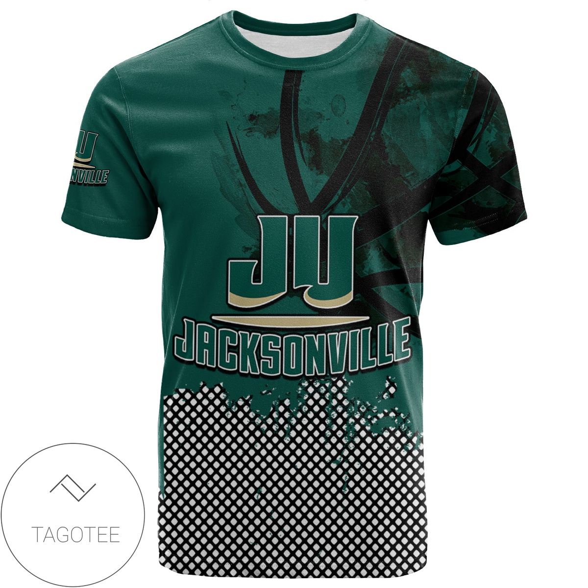 Jacksonville Dolphins All Over Print T-shirt Men’s Basketball Net Grunge Pattern – NCAA