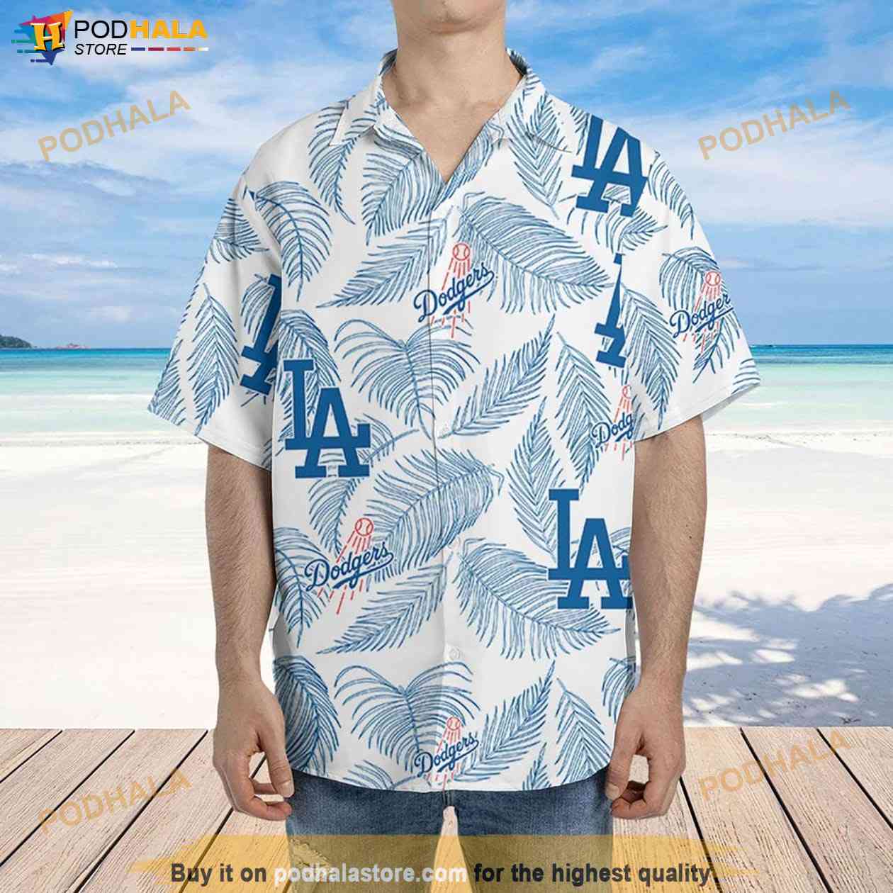 Los Angeles Dodgers Hawaiian Shirt, Sketch Palm Leaves Seamless Pattern Summer Shirt