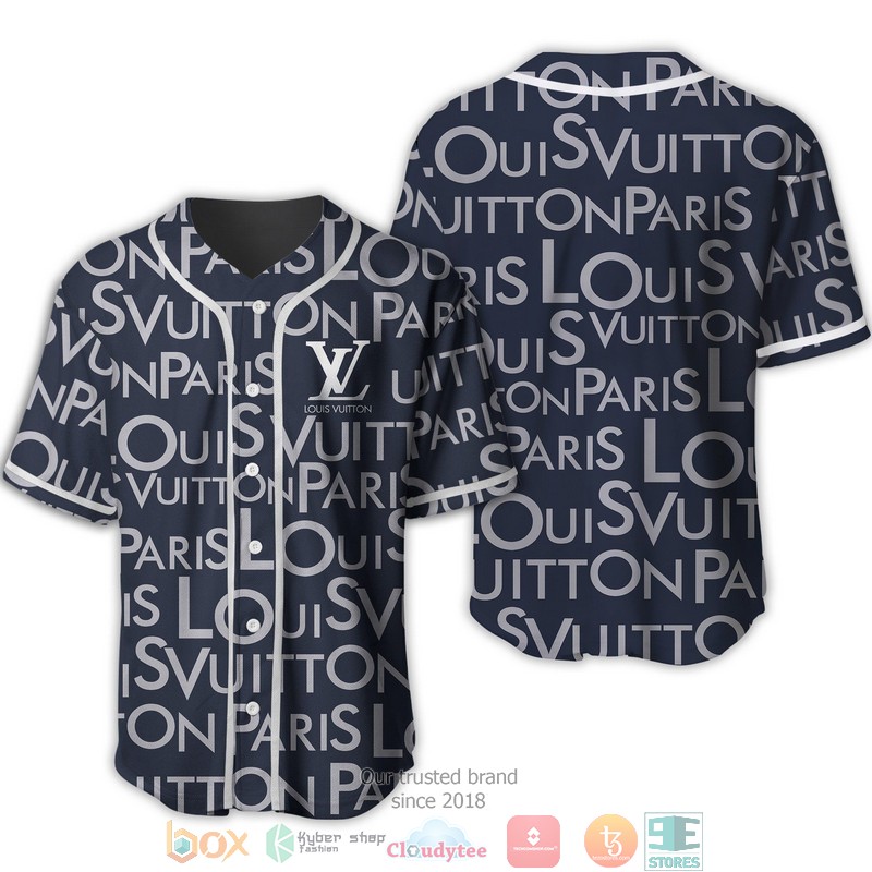 Louis Vuitton Silver Letter Navy Baseball Jersey