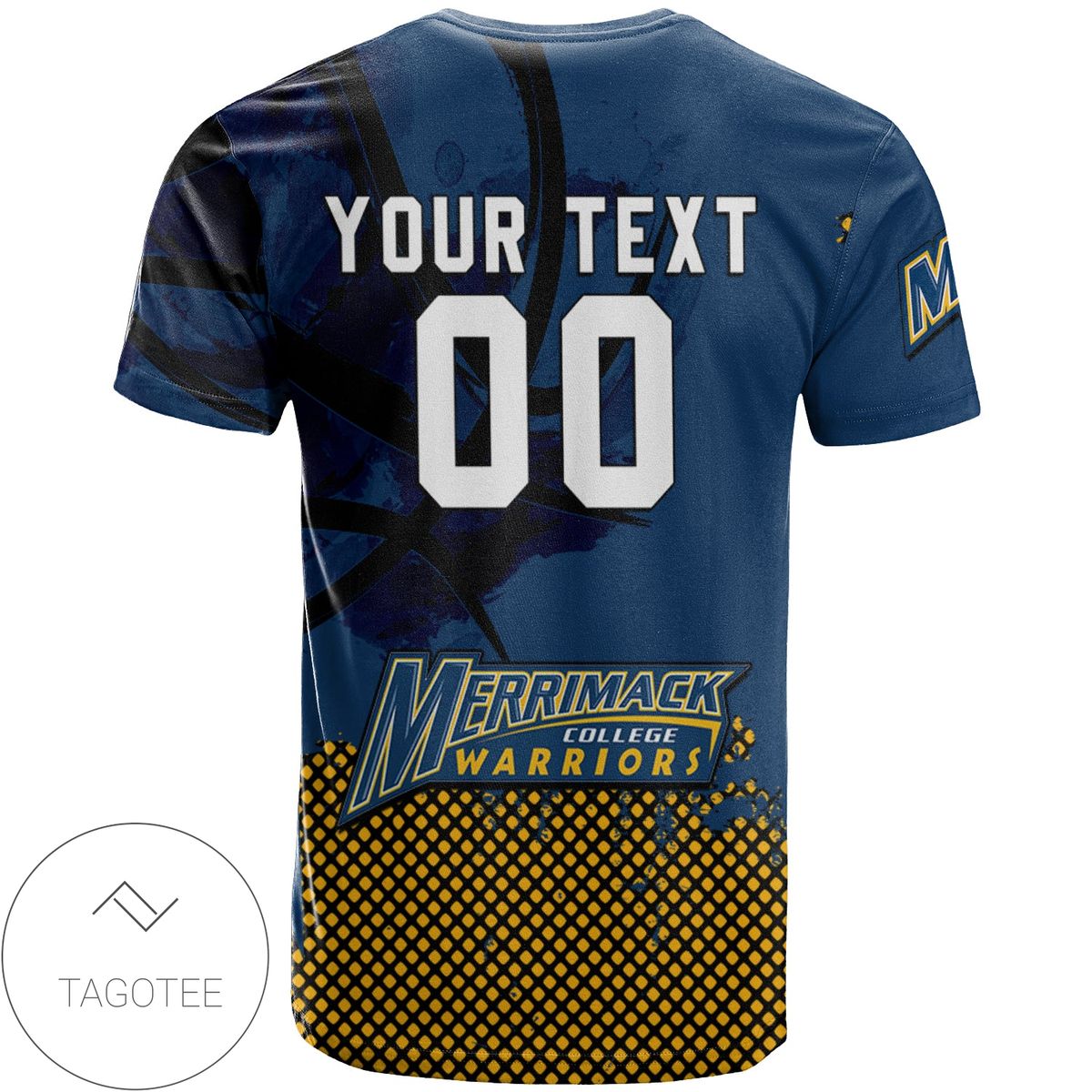 Merrimack Warriors All Over Print T-shirt Men’s Basketball Net Grunge Pattern – NCAA