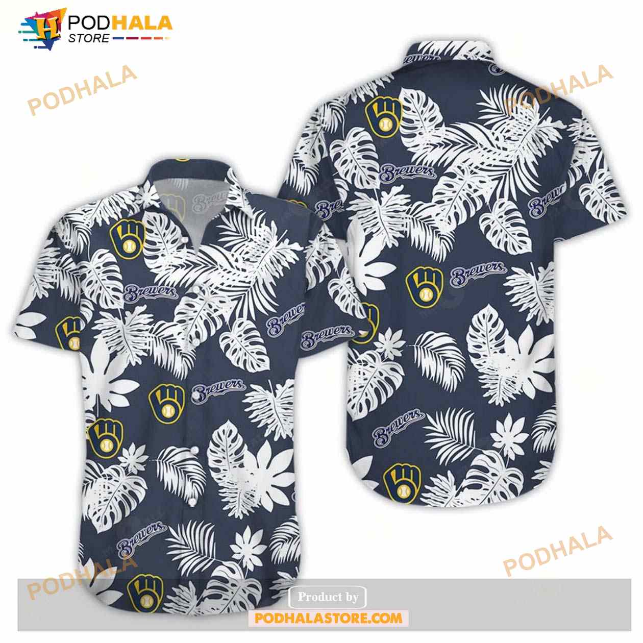 Milwaukee Brewers Name Tropical Palm Leaves Black Funny Hawaiian Shirt