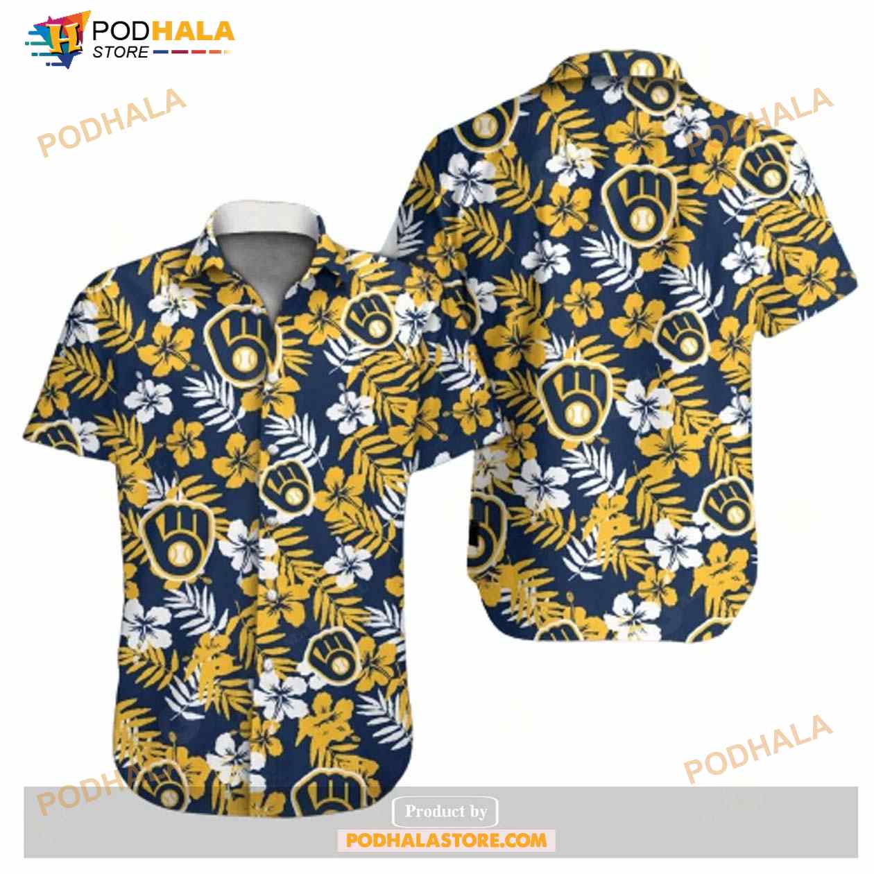 Milwaukee Brewers Symbol Yellow Hibiscus Funny Hawaiian Shirt