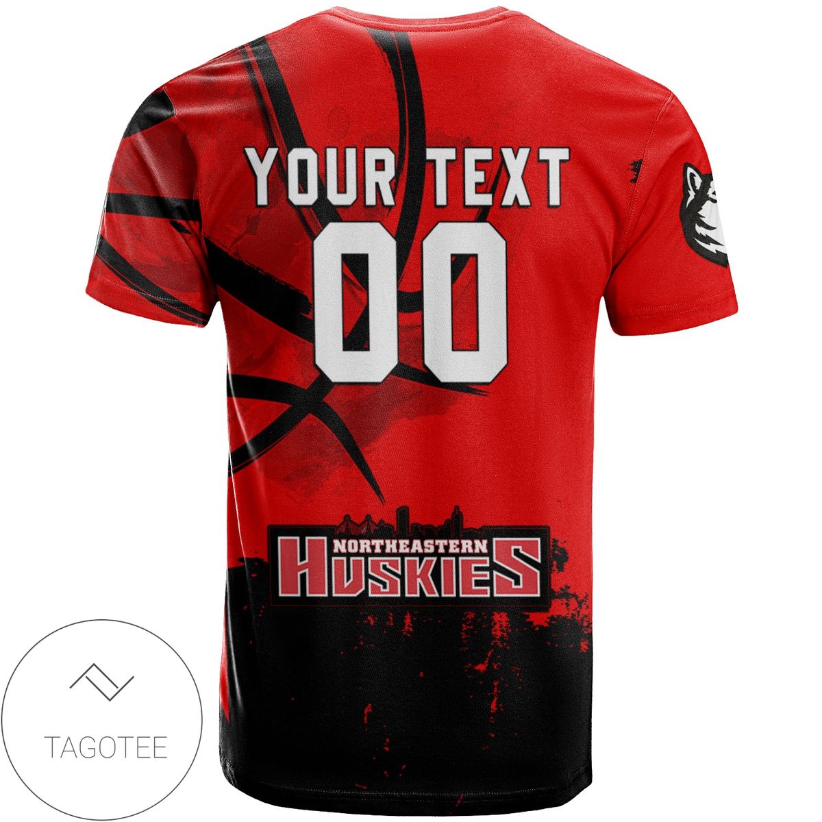 Northeastern Huskies All Over Print T-shirt Men’s Basketball Net Grunge Pattern – NCAA