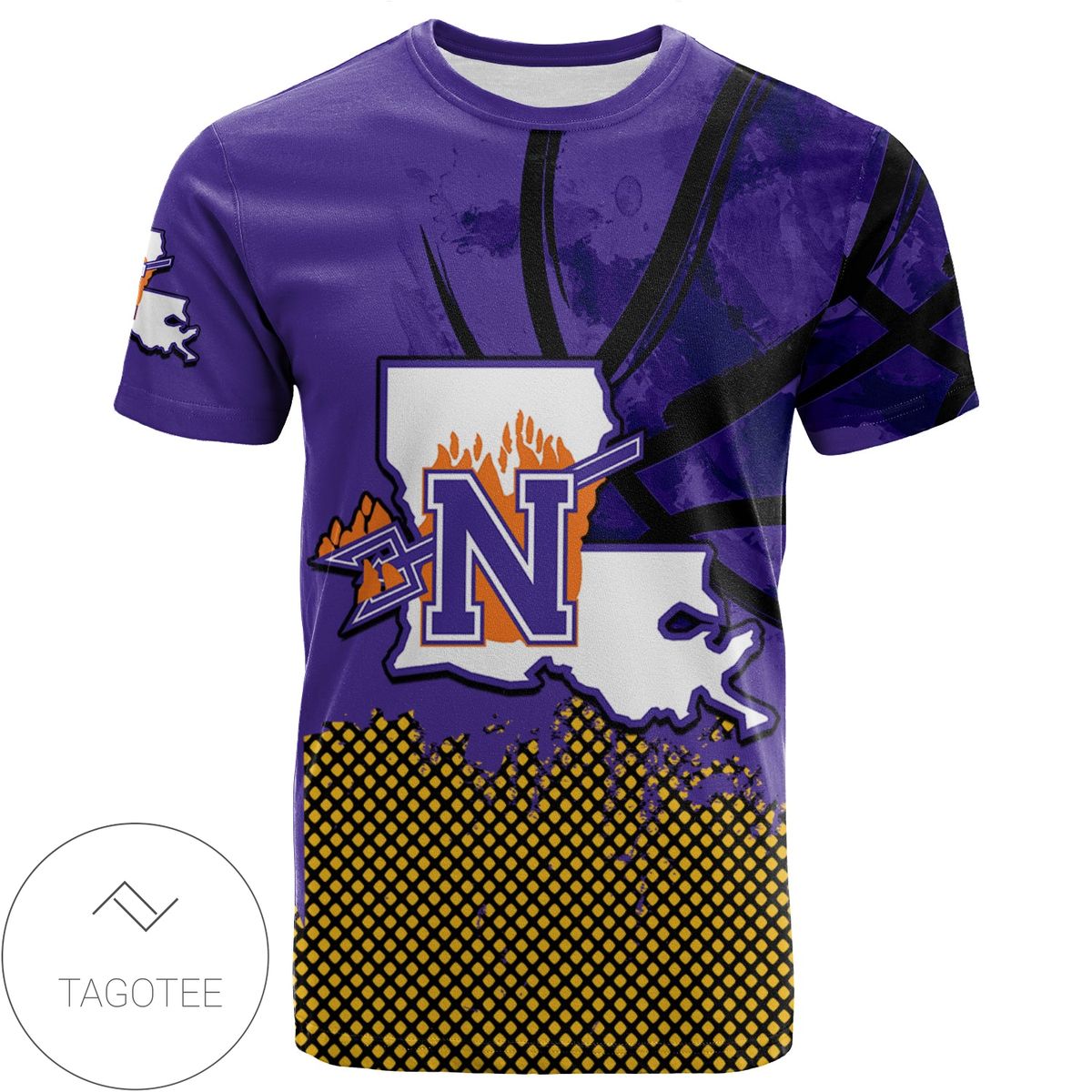 Northwestern State Demons All Over Print T-shirt Men’s Basketball Net Grunge Pattern – NCAA