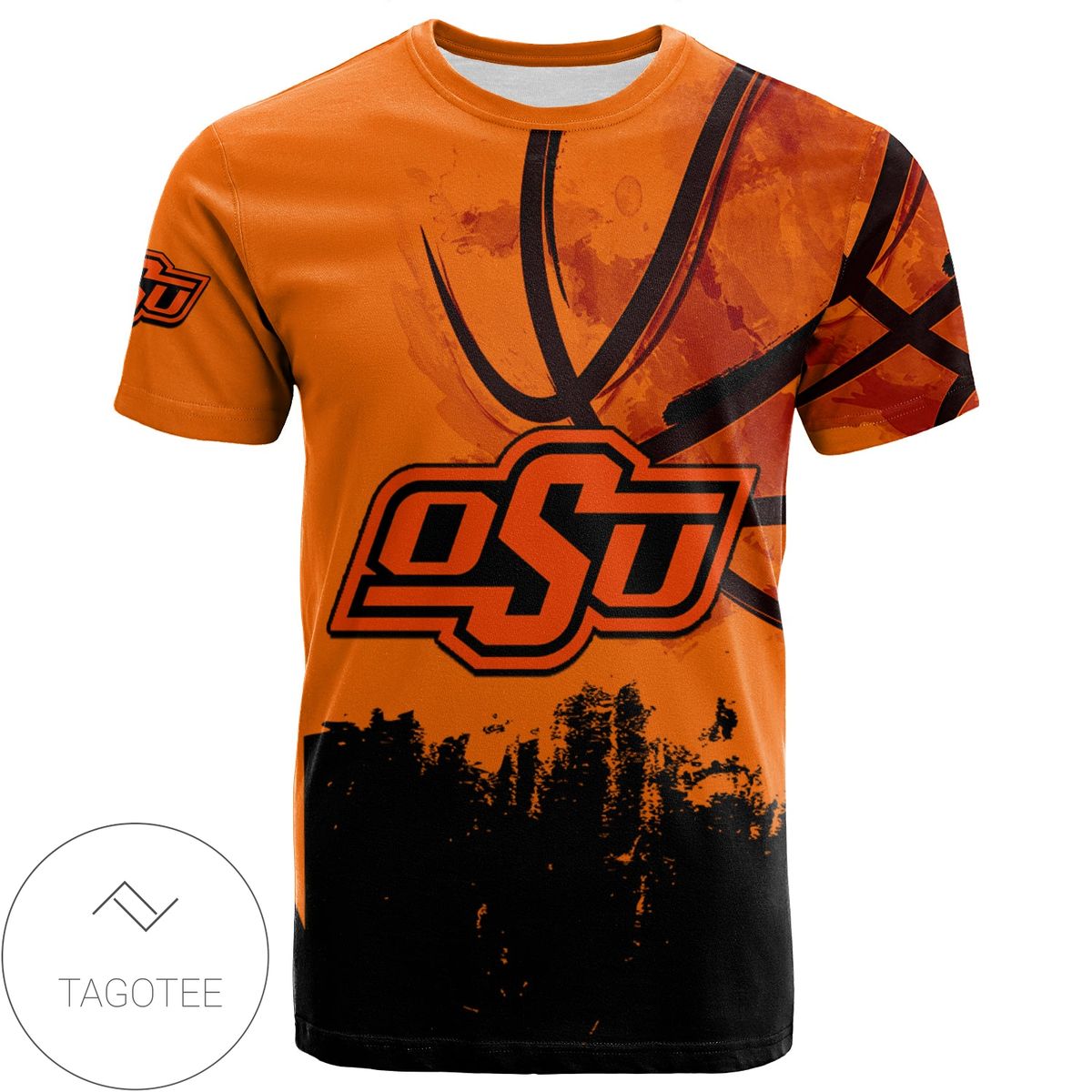 Oklahoma State Cowboys All Over Print T-shirt Men’s Basketball Net Grunge Pattern – NCAA