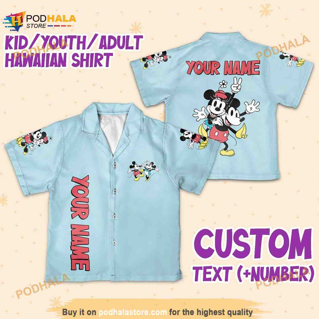 Get the look you need for any occasion with Personalize Name Disney Mikey Minnie Vintage Style, Mikey Minnie Hawaiian Shirt. These customizable hawaiian shirts are perfect for any festival, party, vacation, or time at the beach. With multiple color options available these shirts will make you the real eye-catcher at any event!