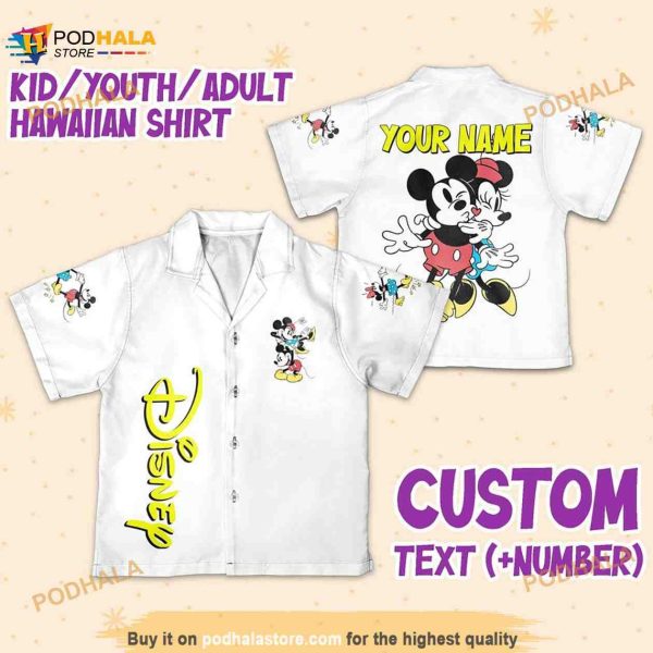 Personalize Name Disney Mikey Minnie Vintage White, Mikey Minnie Hawaiian Shirt