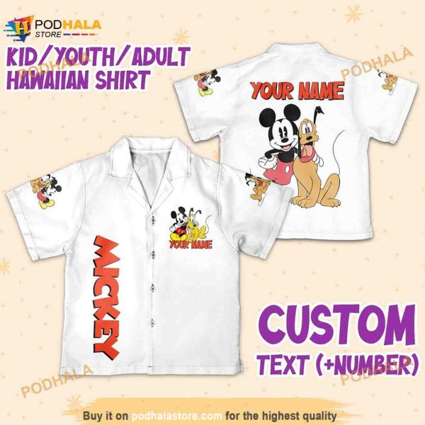 Personalize Name Disney Mikey Pluto Vintage White, Mikey Hawaiian Shirt