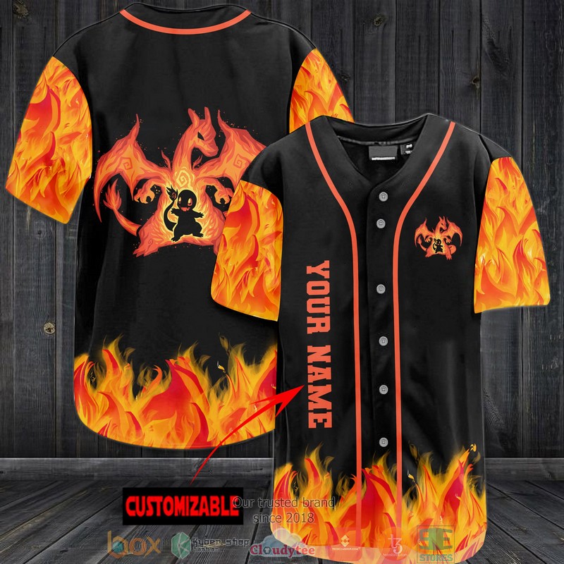 Personalized Pokemon Charizard Flame Baseball Jersey