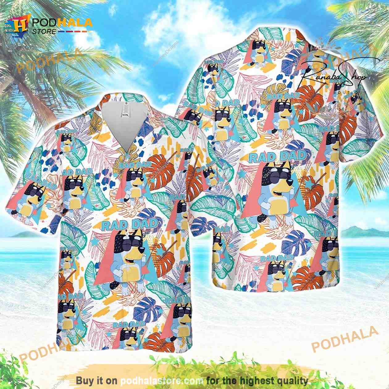Get the look you need for any occasion with Rad Dad Blueydad Hawaiian Shirt, Bandit Heeler Shirt. These customizable hawaiian shirts are perfect for any festival, party, vacation, or time at the beach. With multiple color options available these shirts will make you the real eye-catcher at any event!