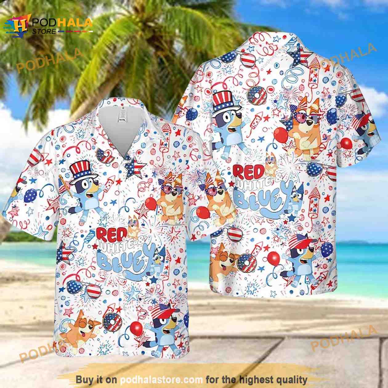 Red White Bluey 4th Of July 3D Hawaiian Shirt, Blueydad Hawaiian Shirt, Blueydad Bingo Shirt, Blueydad