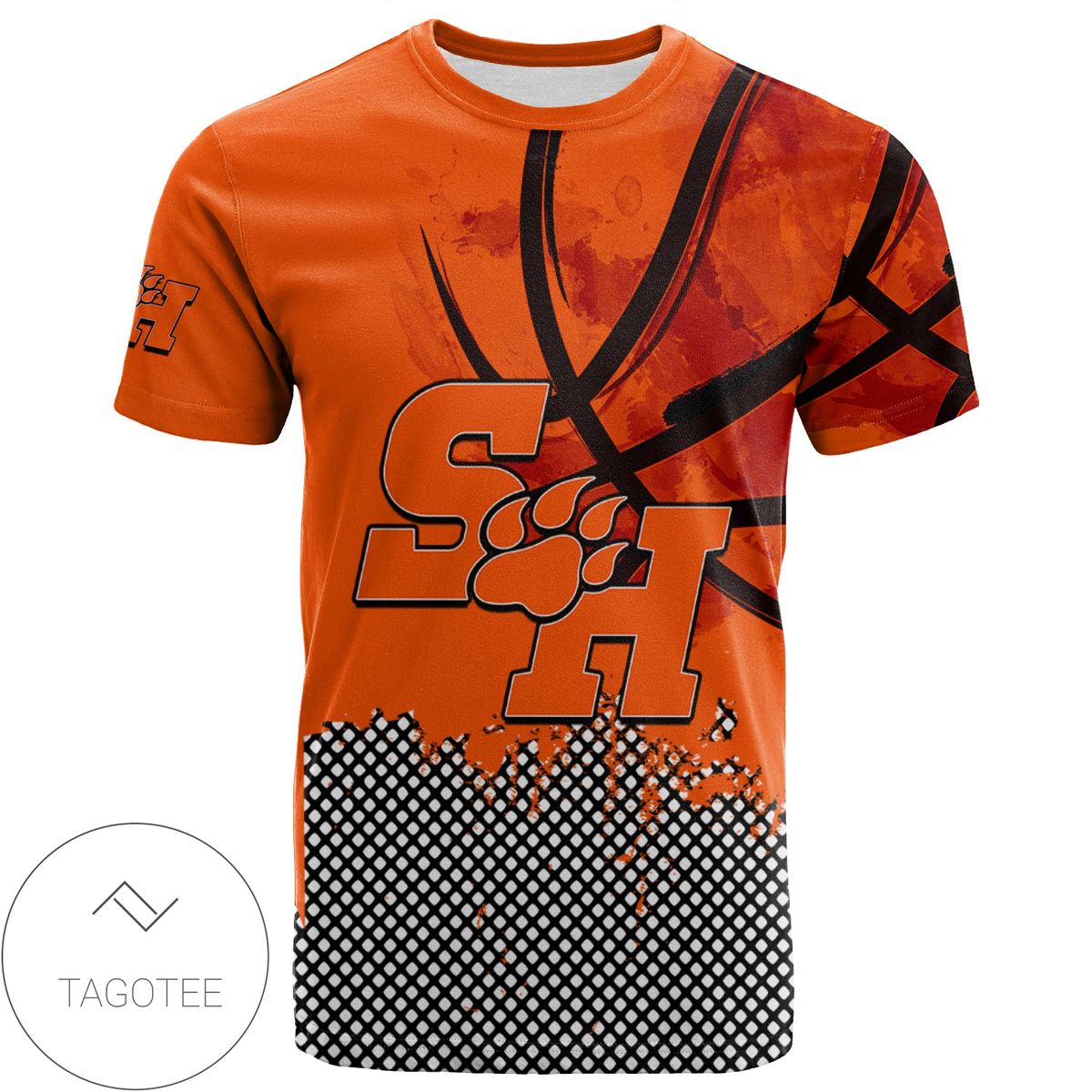 Sam Houston State Bearkats All Over Print T-shirt Men’s Basketball Net Grunge Pattern – NCAA