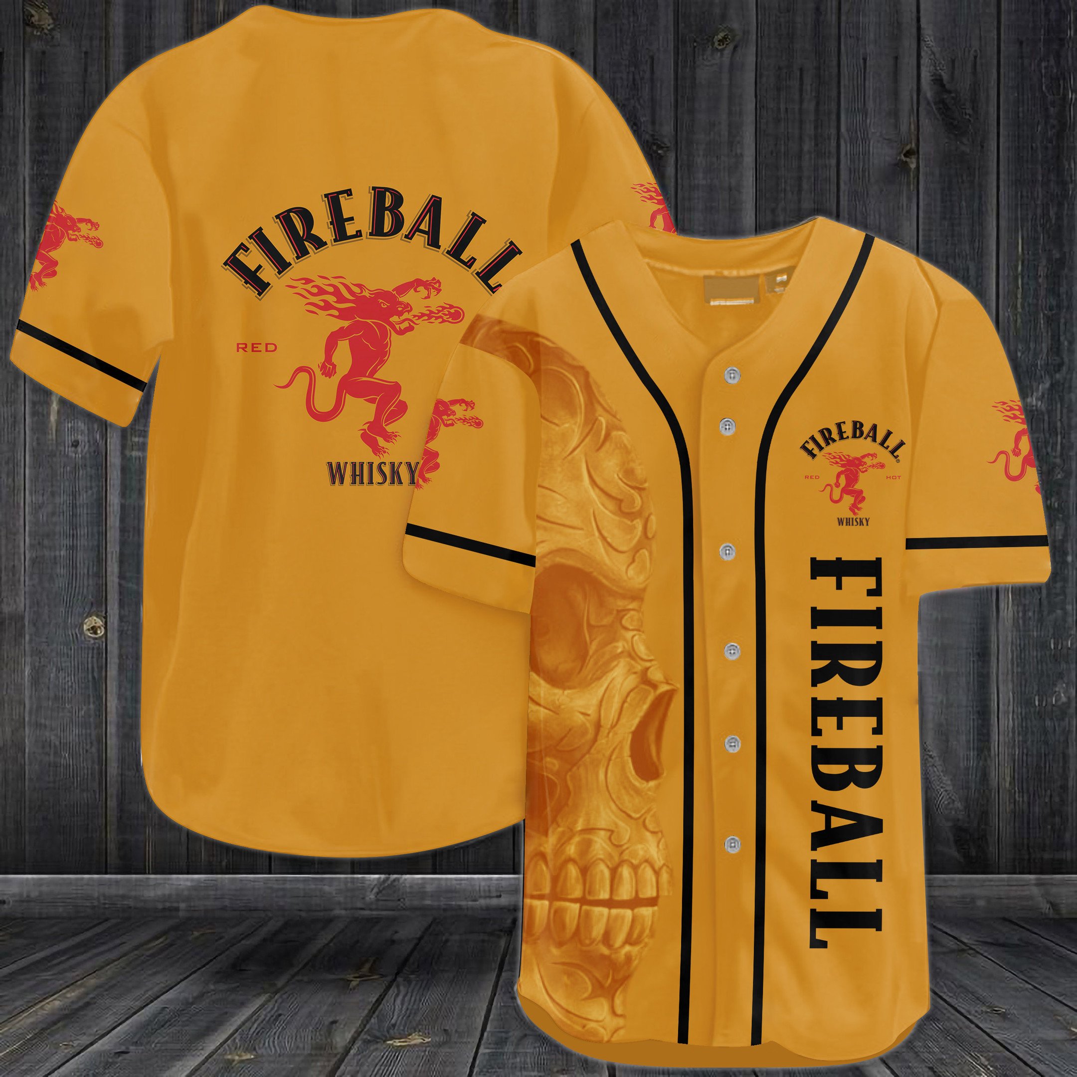 Skull Fireball Red Hot Whiskey Baseball Jersey