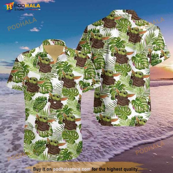 Star Wars Baby Yoda Reaching Tropical Leaf Hawaiian Shirt
