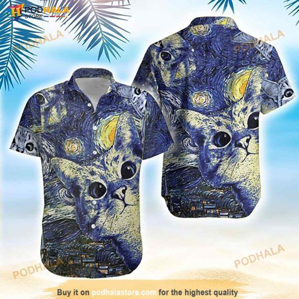Starry Cats Hawaiian Shirt, Hawaiian Outfit For Men
