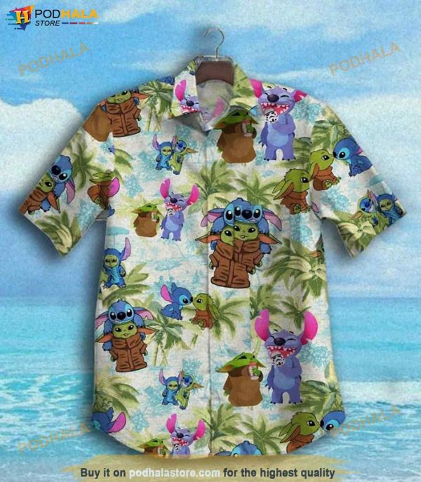 Stitch And Baby Yoda Cartoon Lilo And Stitch Hawaiian Shirt