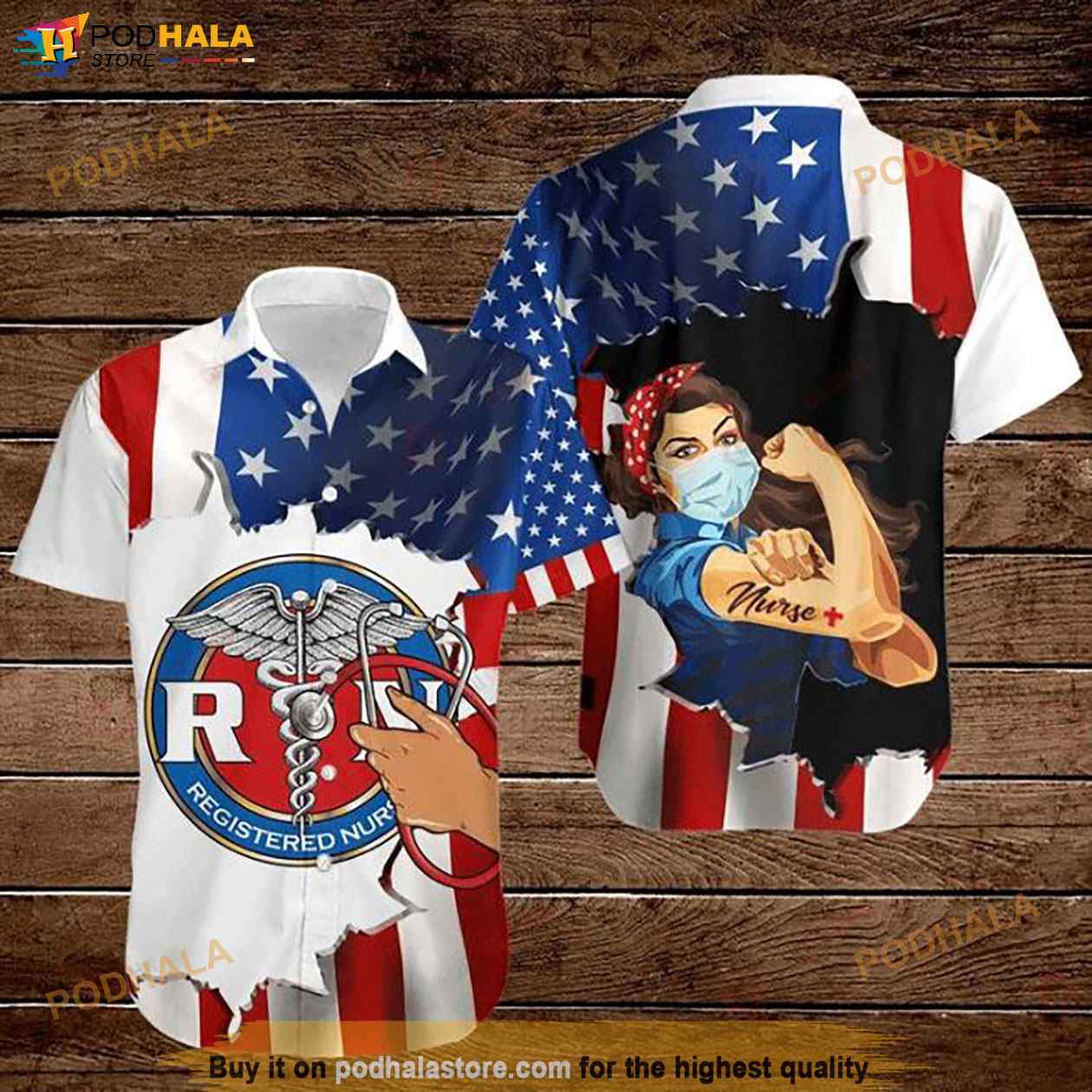 The Caduceus Stethoscope Vector Registered Nurse American Flag 4th Of July Independence Day Hawaiian Shirt