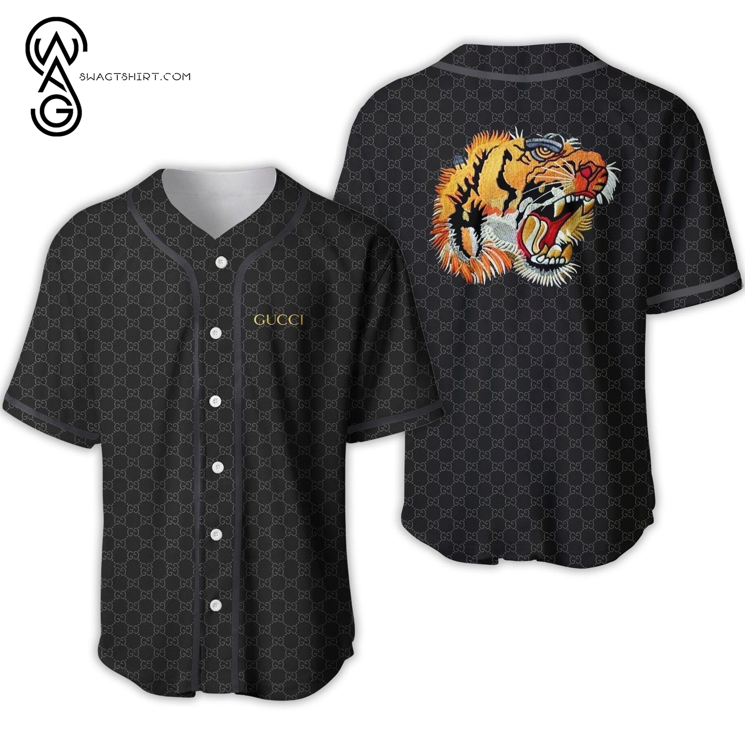 [Top-Selling] Gucci Tiger Logo Black Version Full Print Baseball Jersey