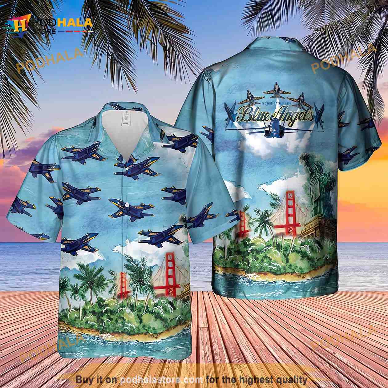 US Navy Blue Angels Hawaiian Shirt, Summer Beach Shirt, Short Sleeve Hawaii Shirt